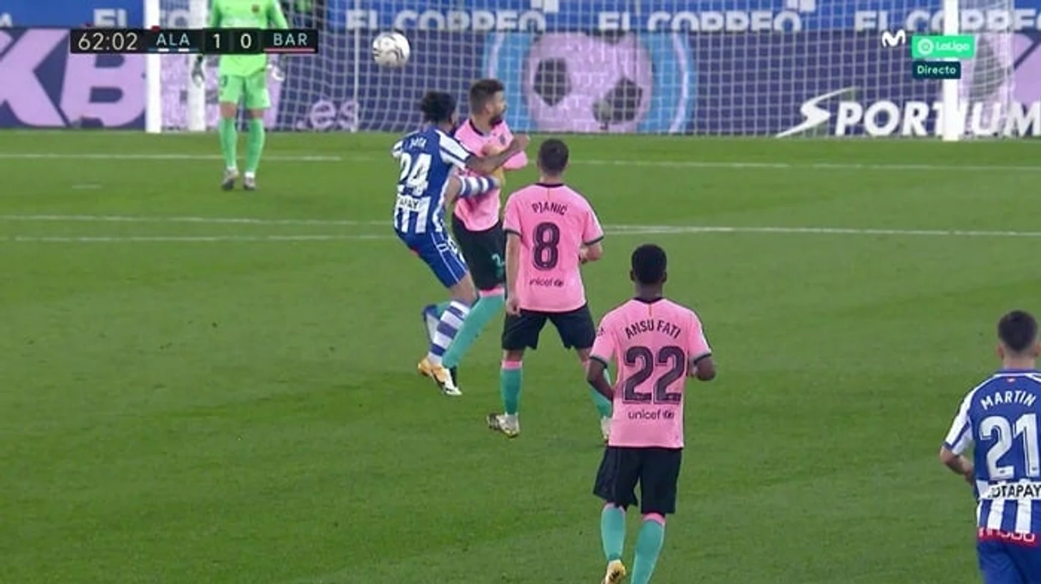 Хавбек «Алавеса» Хота ударил ногой в грудь Пике и был удален в матче с «Барсой»