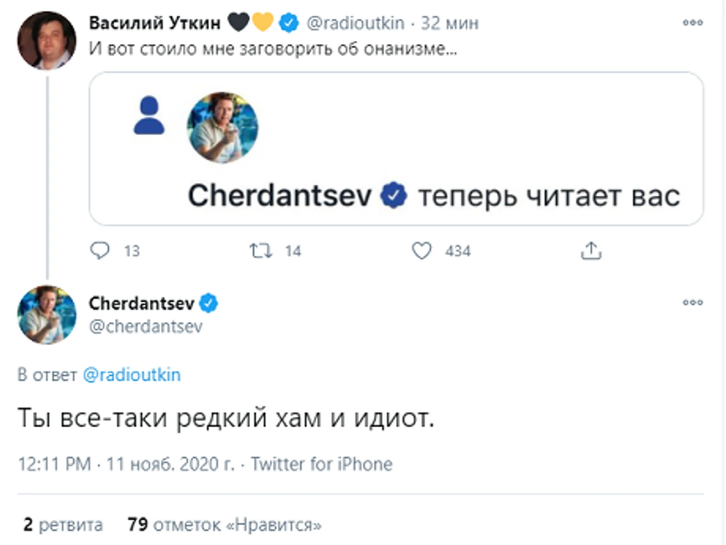 Черданцев – Уткину: «Ты все-таки редкий хам и идиот»