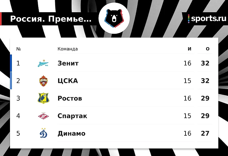 Армейцы по итогам 16-го тура опустились на второе место в таблице, которую возглавил «Зенит».