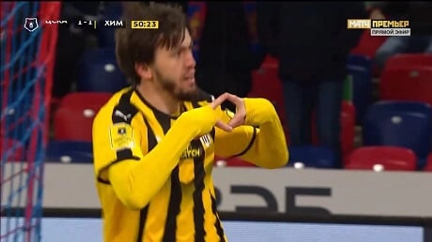 Полузащитник «Химок» Резиуан Мирзов забил ЦСКА в матче 17-го тура РПЛ (2:2, второй тайм).
