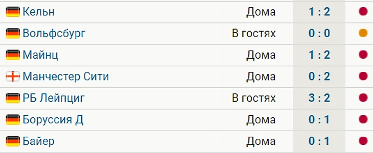 Всего за последние 7 матчей у гладбахцев 1 ничья и 6 поражений.