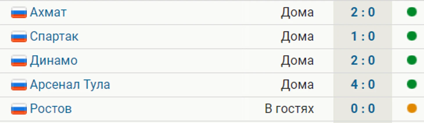 Команда Владимира Федотова за последние 5 матчей в чемпионате одержала 4 победы и 1 раз сыграла вничью. Общий счет – 9:0.