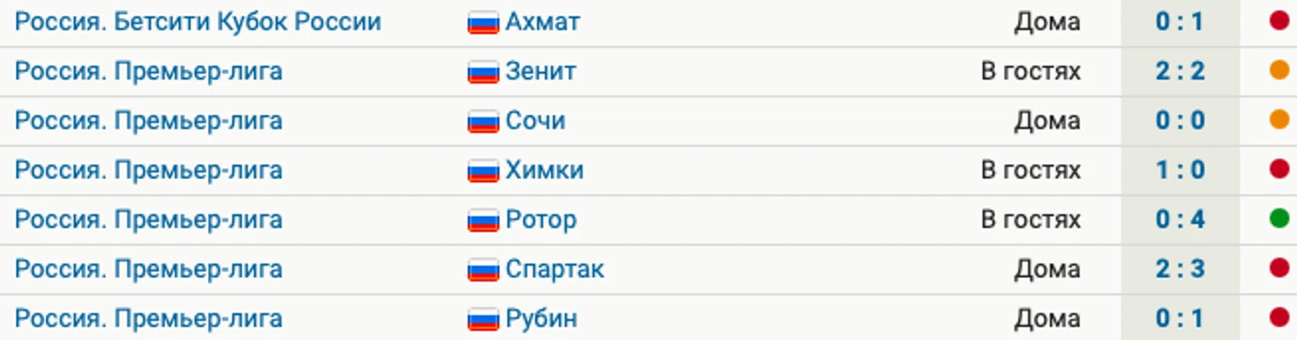 У команды тренера Валерия Карпина лишь одна победа в семи последних матчах во всех турнирах.