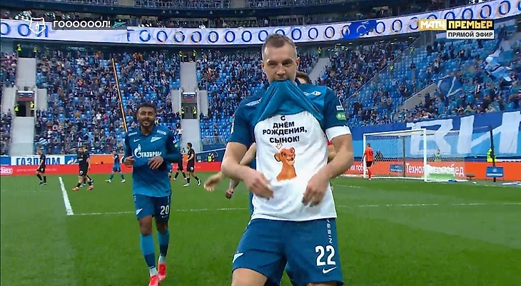 После гола 32-летний игрок поднял игровую майку и показал футболку со львенком и надписью «С днем рождения, сынок».