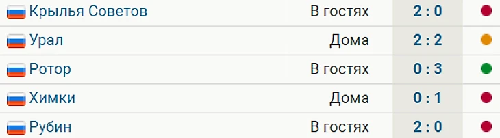 Также была ничья с «Уралом» (2:2) и три поражения – от «Крыльев Советов» в Бетсити Кубке России и от «Химок» и «Рубина» в РПЛ.