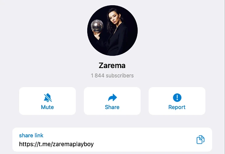 Отметим, что ссылка на ее канал выглядит так: https://t.me/zaremaplayboy.
