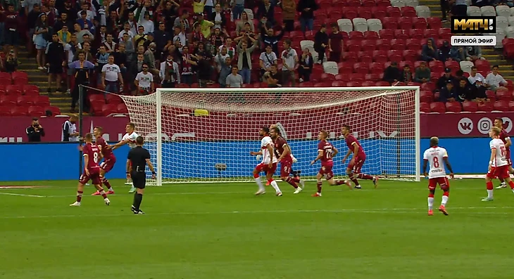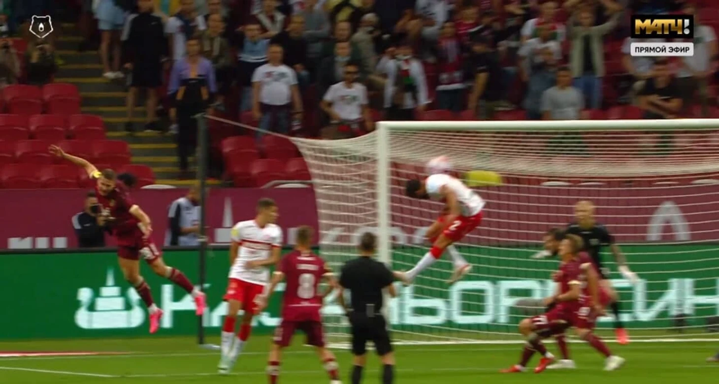 Главный арбитр Владислав Безбородов принял решение не засчитывать мяч в связи с тем, что хавбек «Спартака» Роман Зобнин во время эпизода с голом толкнул в спину полузащитника Оливера Абильгора.
