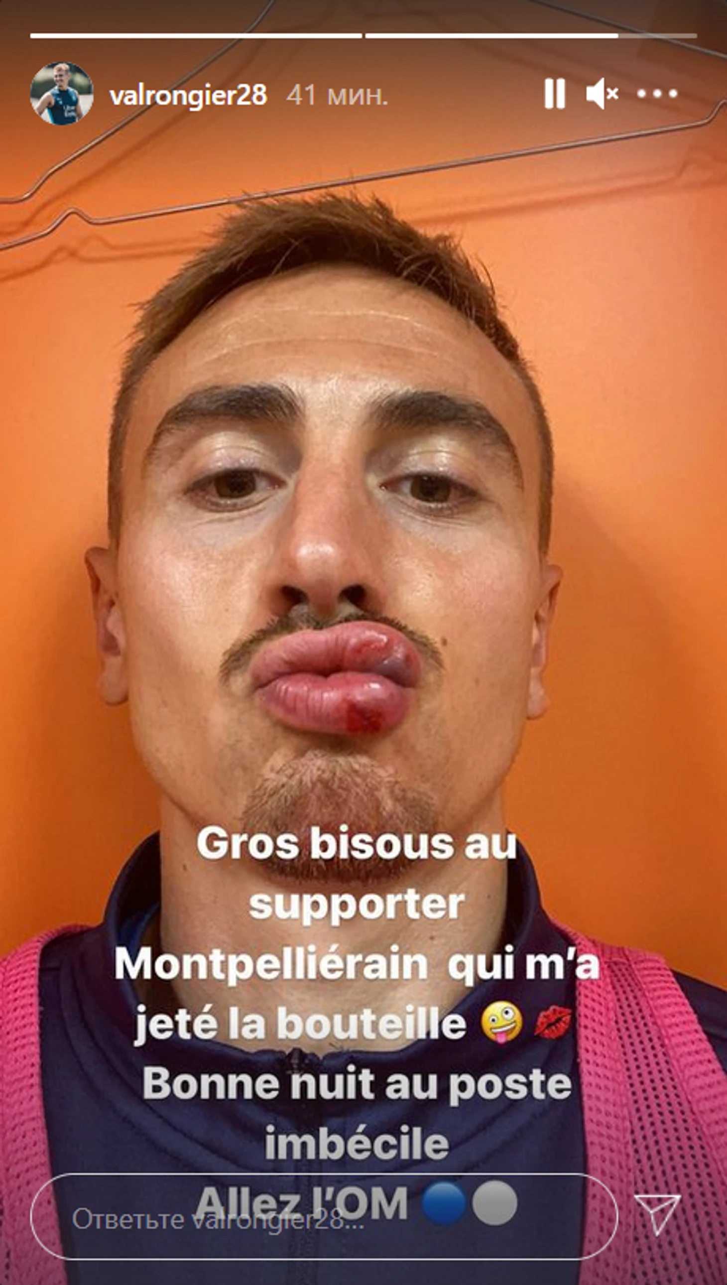 Фанаты «Монпелье» брошенной бутылкой разбили губу хавбеку «Марселя» Ронжье. Судья прерывал матч