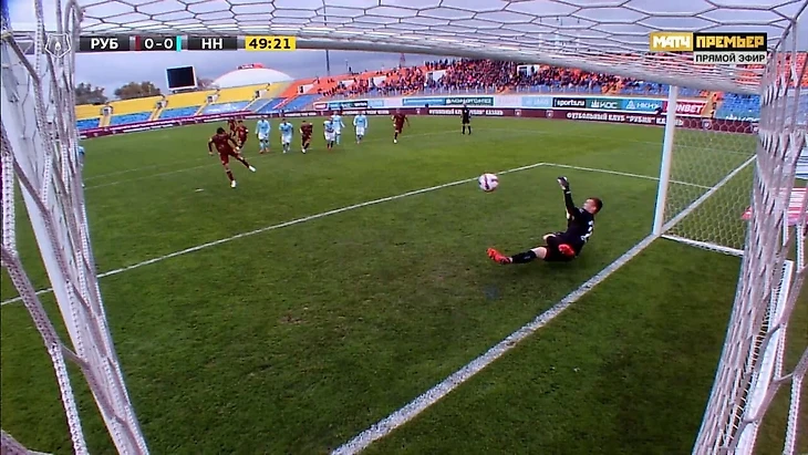 Вратарь «Нижнего Новгорода» Артур Нигматуллин парировал удар с пенальти в матче 10-го тура РПЛ против «Рубина» (1:0, второй тайм).