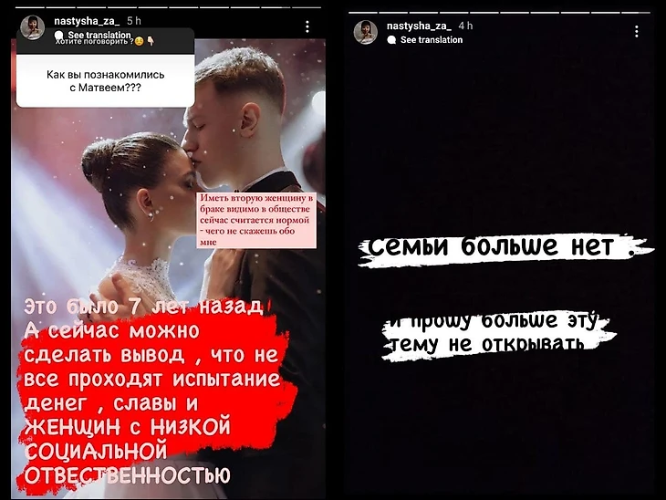 Семьи больше нет. Прошу больше эту тему не открывать», – написала Анастасия.