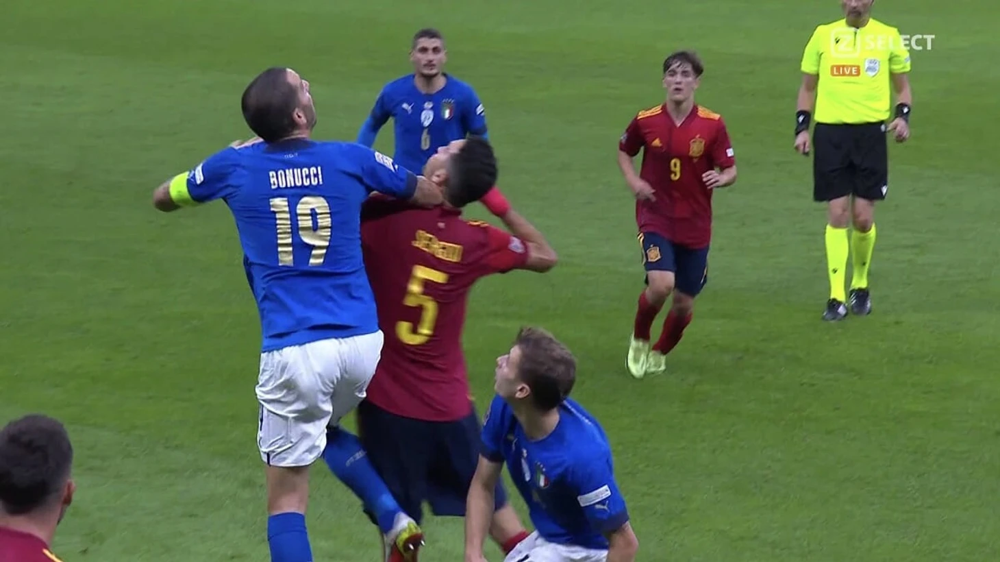 Карасев удалил Бонуччи, карточки – за разговоры и удар локтем Бускетса