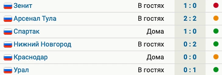 Последнее поражение было от «Зенита» на выезде (0:1).