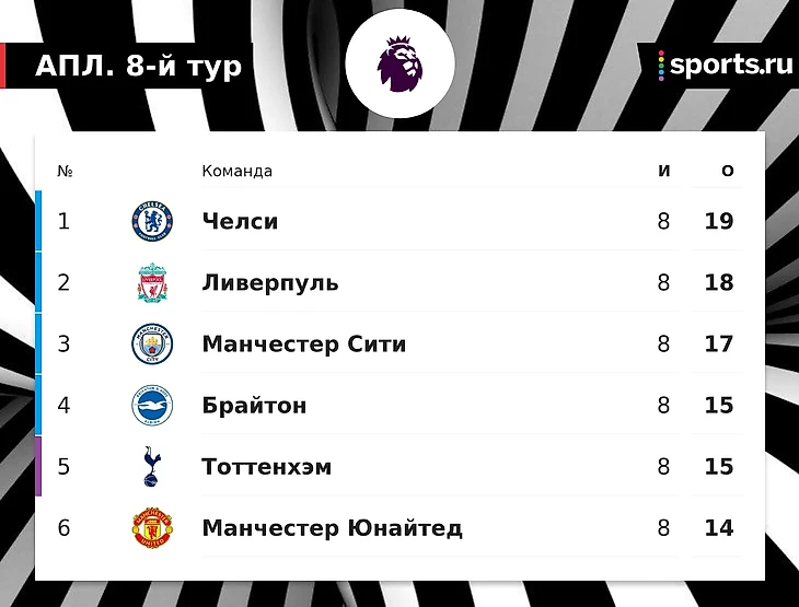 По его итогам состав лидирующей тройки не изменился: «Челси» занимает первое место с 19 очками, «Ливерпуль» идет вторым с 18 баллами, «Манчестер Сити» – 3-й с 17 очками.