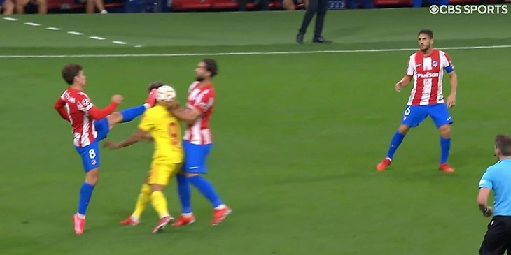 Гризманн удален за удар по голове Фирмино высоко поднятой ногой в матче с «Ливерпулем»