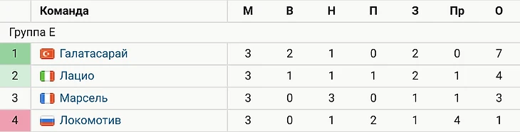Лидируют стамбульцы с семью очками, у «Лацио», занимающего вторую позицию, четыре балла, у «Марселя» – три.