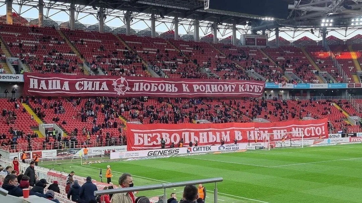 «Безвольным в клубе не место». Баннер фанатов «Спартака» на игре с «Ростовом» после 1:7 от «Зенита»