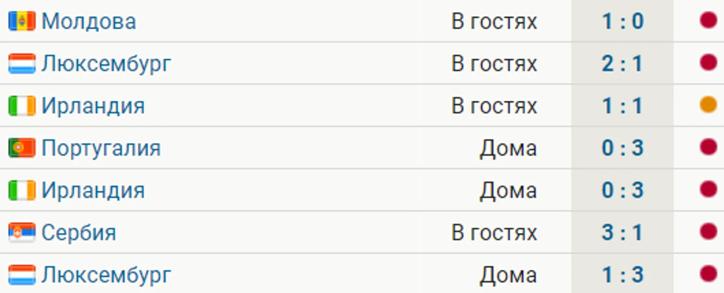 Последняя победа датируется 2 июня 2021 года – была обыграна Беларусь (2:1).