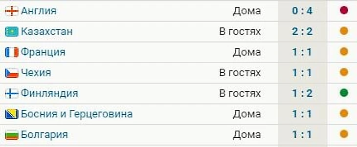 За этот период украинцы одержали одну победу – в отборе ЧМ-2022 над Финляндией (2:1) – и потерпели одно поражение – от Англии в 1/4 финала Евро-2020 (0:4).