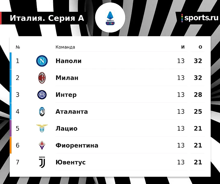 Отставание «Интера» в таблице от неаполитанцев и от «Милана», который накануне уступил «Фиорентине» (3:4), теперь составляет четыре очка.