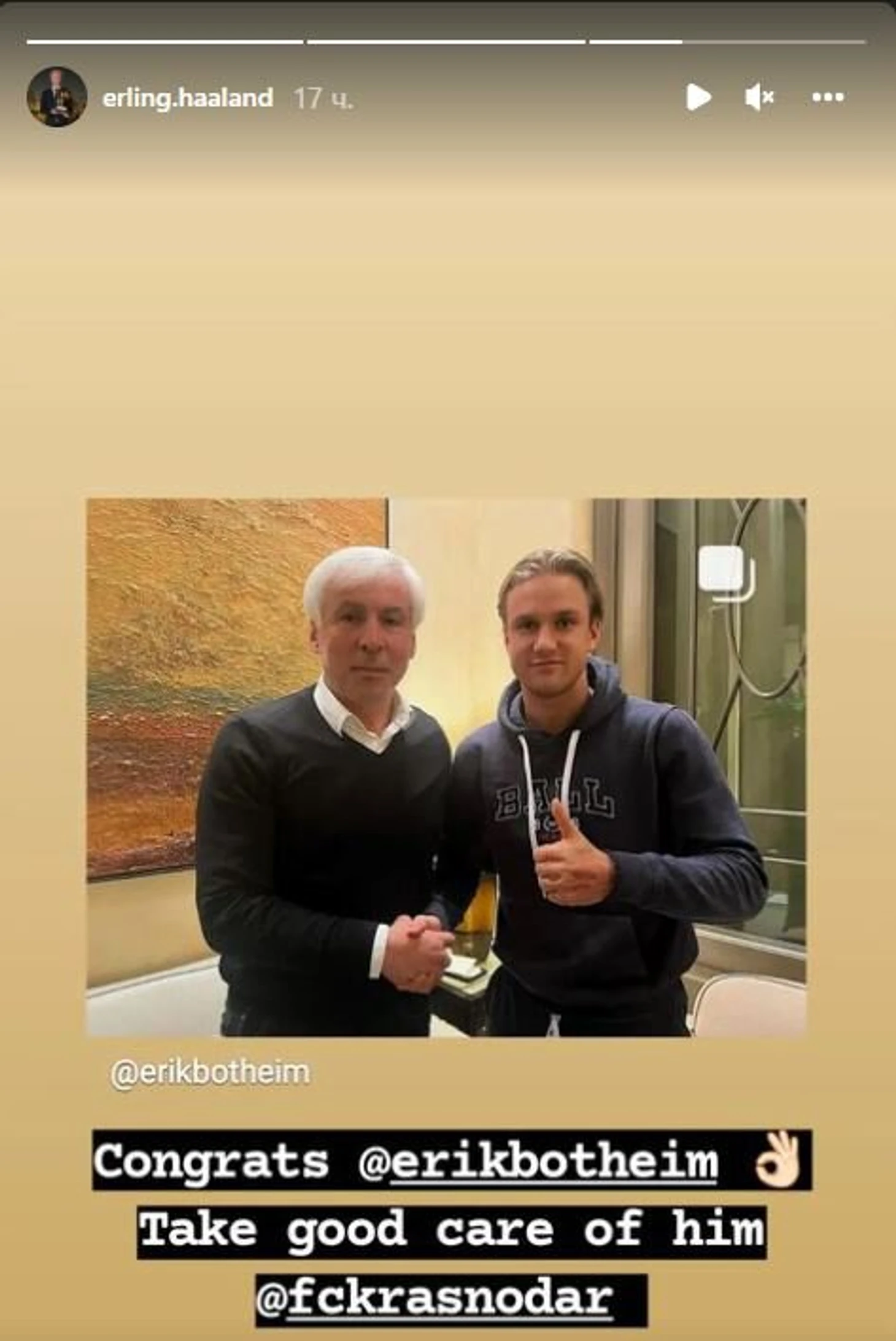 «Поздравляю, Эрик! Береги его, «Краснодар», – написал Холанд в инстаграме.
