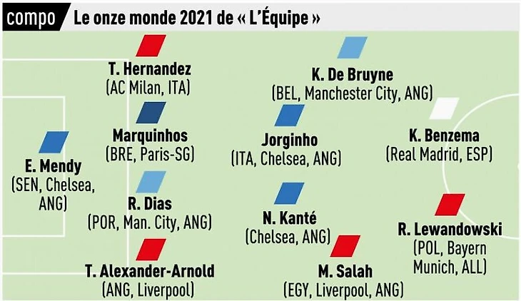 Журнал L’Équipe составил символическую сборную по итогам 2021 года.