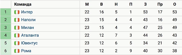 Команда Стефано Пиоли, как и «Наполи», отстает от лидирующего «Интера» на 4 очка, набрав 49 баллов в 23 матчах. Эти команды делят 2-3-е места в таблице. «Ювентус» идет пятым и отстает от «Интера» на 11 очков.