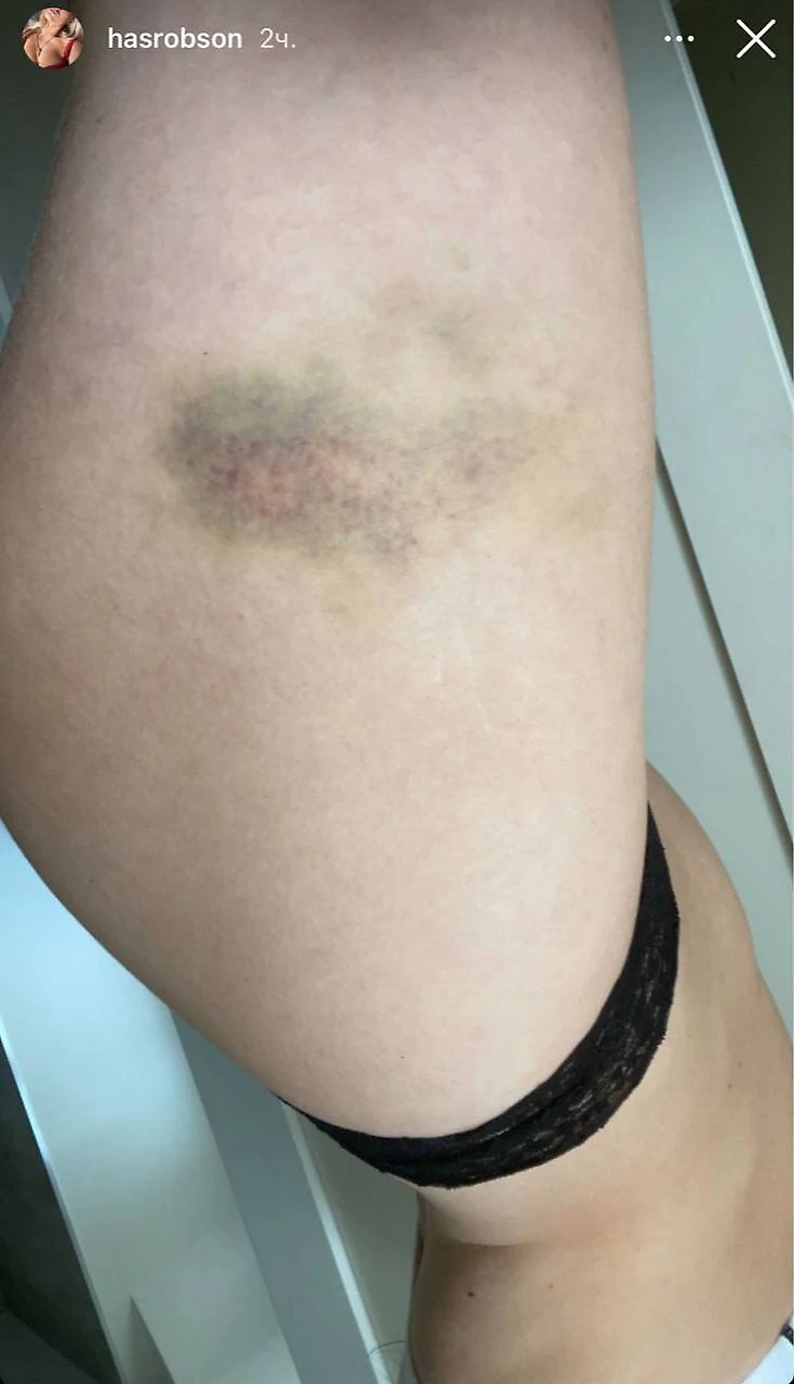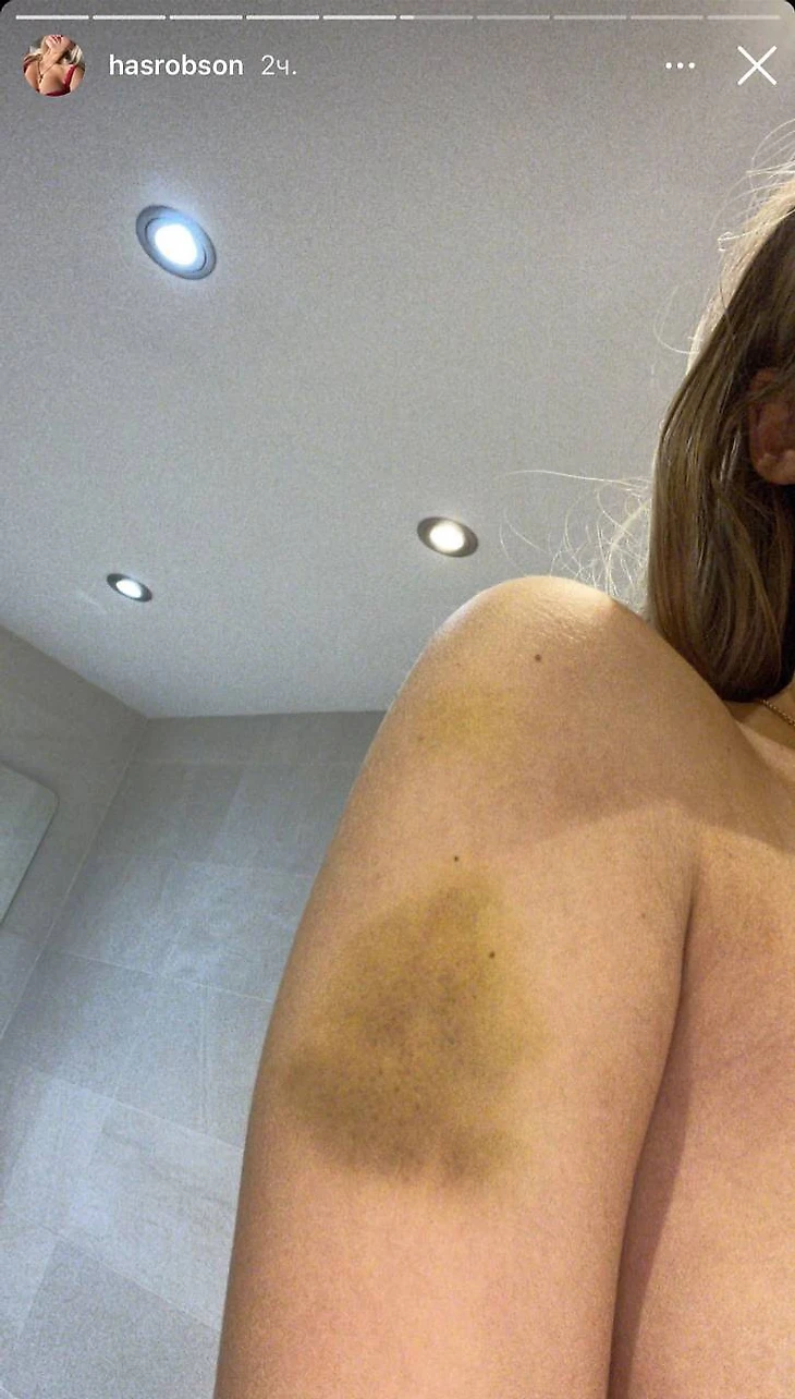 Девушка в сторис инстаграма выложила серию видео и фото, где у нее гематомы на теле и разбита губа. «Для всех, кто хочет знать, что Гринвуд на самом деле делает со мной», – подписала Робсон одну из сторис.