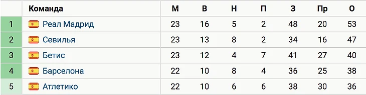 «Бетис» отстает от «Реала» на 13 очков, «Барселона» – на 15, однако у каталонцев на одну игру меньше.
