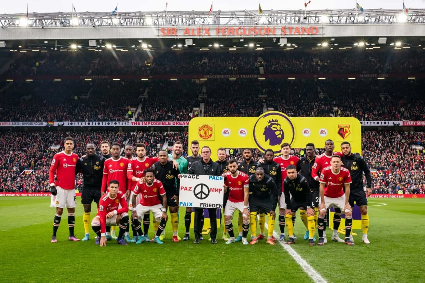Перед матчем 27-го тура АПЛ с «Уотфордом» игроки «МЮ» и главный тренер команды Ральф Рангник сфотографировались с баннером, на котором на разных языках написано слово «мир».