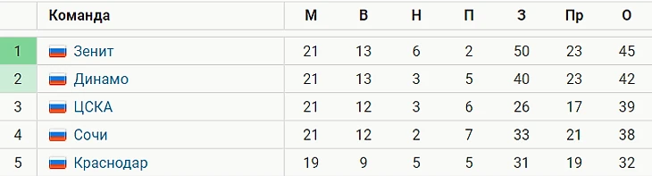 Отрыв «Зенита» от «Динамо» сократился до 3 очков после 21-го тура РПЛ