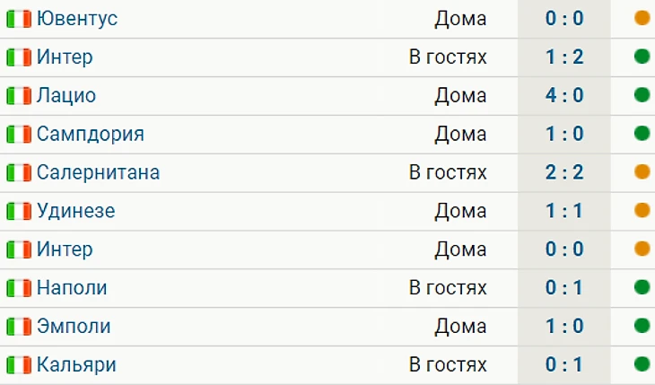 В последний раз команда Стефано Пиоли проигрывала 17 января – «Специи» (1:2). С тех пор у нее 6 побед и 4 ничьих.
