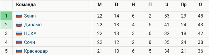 В следующем туре «Зенит» встретится с «Сочи», «Динамо» – с «Краснодаром», ЦСКА – с «Уралом». Матчи пройдут 3 апреля.