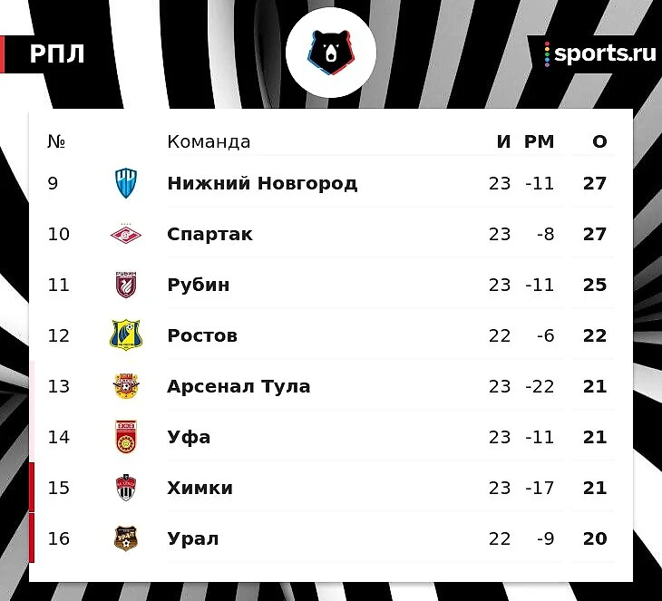 «Спартак» от зоны вылета из РПЛ отделяет 6 очков.
