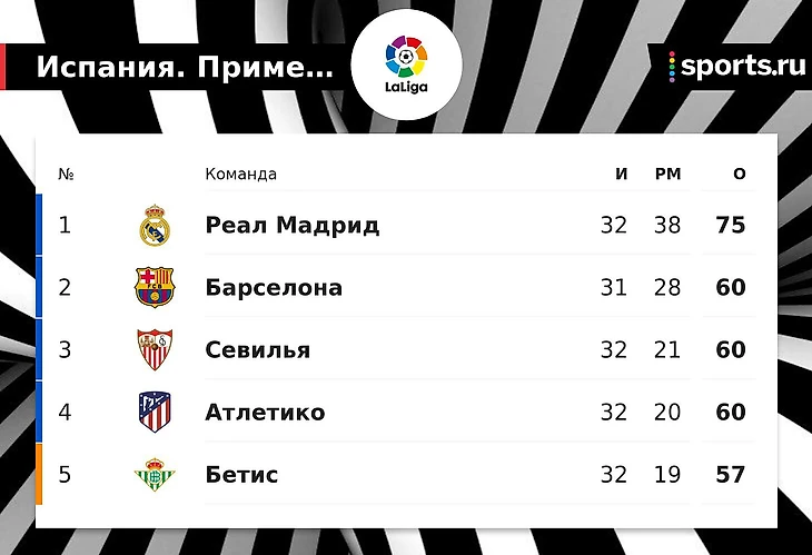 Сегодня «Барселона», ближайший преследователь мадридского клуба, проиграла дома «Кадису» (0:1) и после 32 туров отстает от «сливочных» на 15 очков, имея матч в запасе.