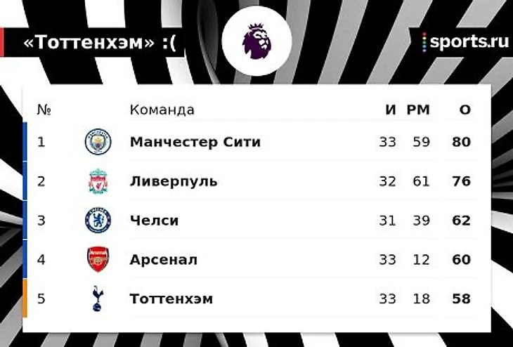 • «Тоттенхэм» потерял шансы на чемпионство. Клуб выигрывал высший дивизион Англии 61 год назад