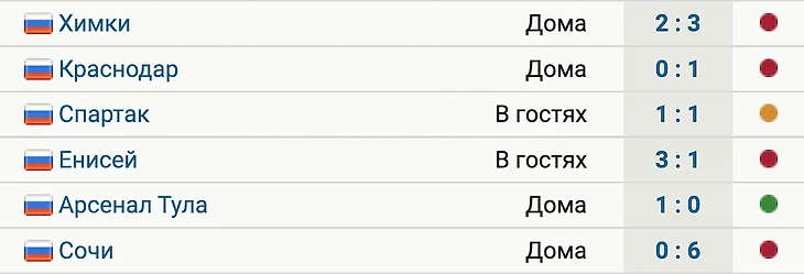 Команда Леонида Слуцкого потерпела шесть поражений в восьми последних играх, одержав одну победу и один раз сыграв вничью.