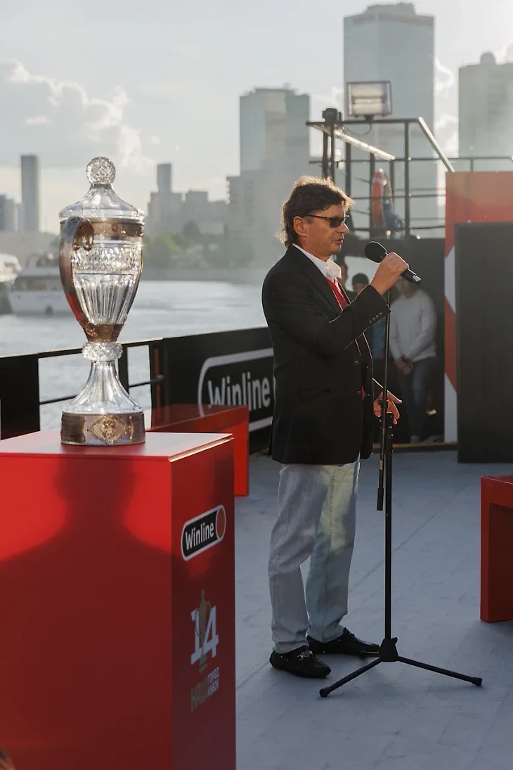 Старт празднованию 100-летия «Спартака» дал председатель совета директоров клуба Леонид Федун. Леонид Арнольдович появился на палубе перед гостями вместе с Кубком России, который красно-белые выиграли неделю назад в «Лужниках» – трофей будет радовать глаз посетителей Winliner до окончания праздничных мероприятий на Москве-реке.