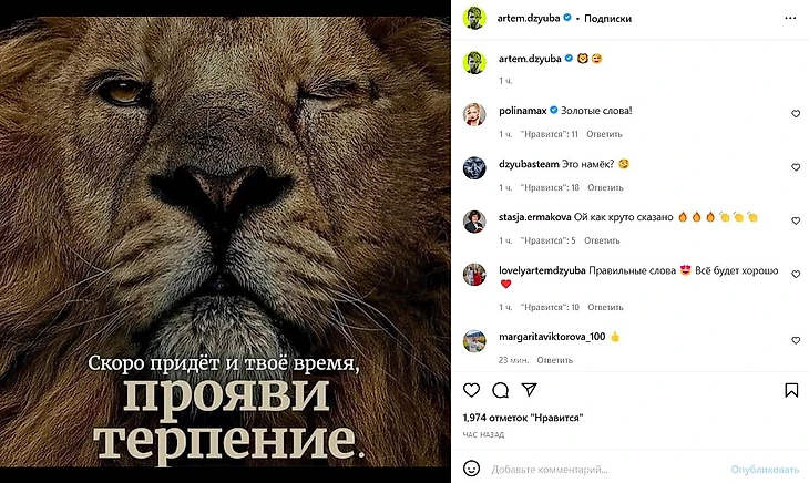 Дзюба опубликовал фото льва с подписью «Скоро придет и твое время, прояви терпение»