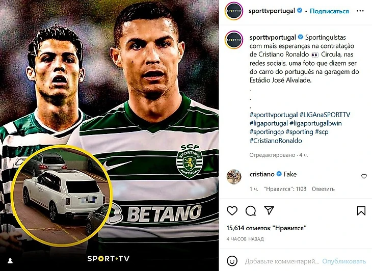 Сегодня в инстаграме португальского телеканала Sport TV появилась информация, что принадлежащий 37-летнему форварду автомобиль якобы был замечен на территории «Жозе Алваладе» – домашнего стадиона клуба из Лиссабона.