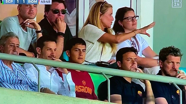 Дибала в футболке «Ромы» смотрел на трибуне матч команды со «Спортингом»