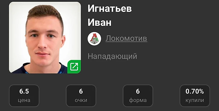 Это принесло 17 очков в Fantasy РПЛ на Sports.ru. За 3 предыдущих матча в «Локомотиве» Игнатьев набрал 6 очков. В свою команду нападающего купили 0,7% игроков.