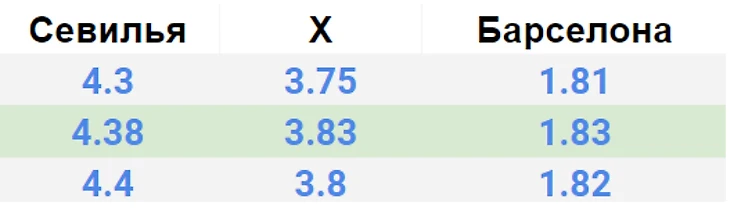 Коэффициенты и роспись на матч Севилья – Барселона