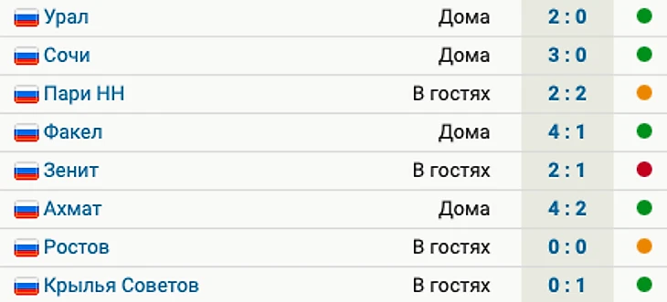 В 8-м туре были обыграны «Крылья Советов» (1:0) на выезде.
