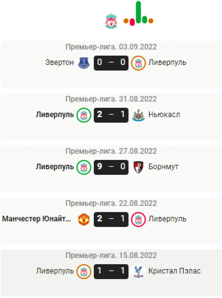 Мерсисайдцы дома сыграли вничью с Кристал Пэлас (1:1), отправили в полный нокаут Борнмут (9:0), а также в упорной борьбе переиграли Ньюкасл (2:1). На выезде красные не так безупречны. Мерсисайдцы сыграли вничью с Фулхэмом (2:2), проиграли МЮ (1:2), а также не сумели переиграть Эвертон (0:0).