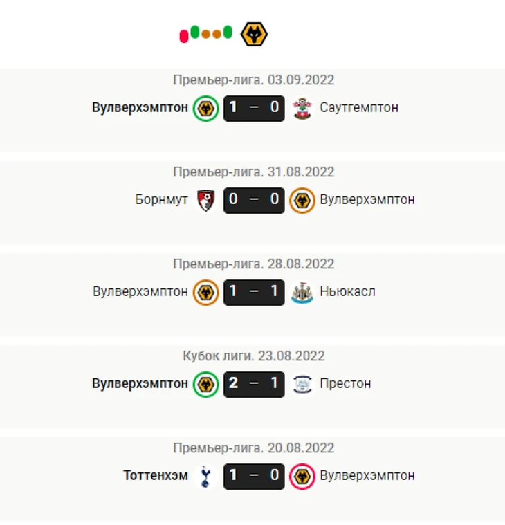 В пяти очных встречах команды продемонстрировали следующие результаты: