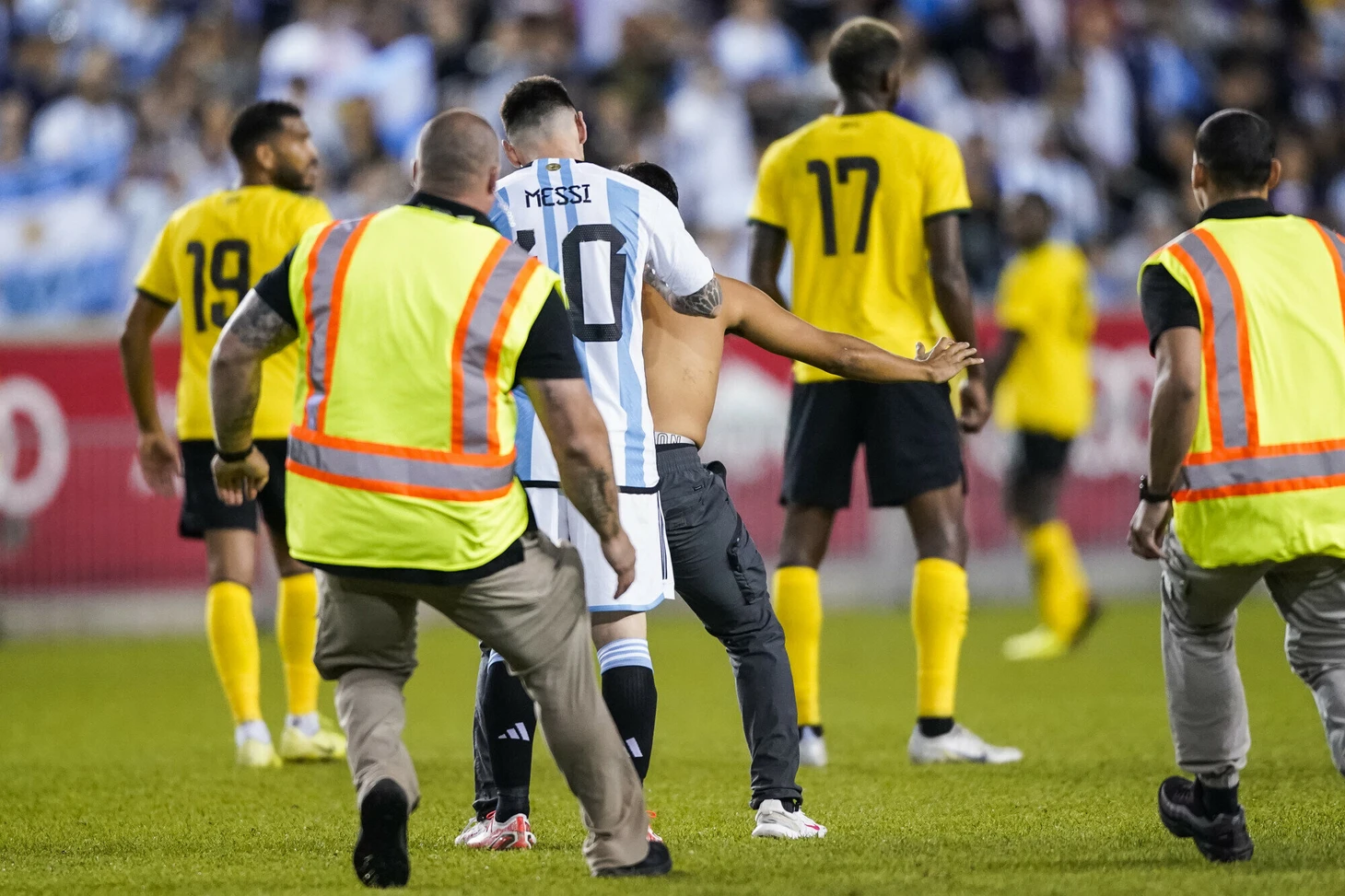 Несколько человек прорвались на поле по ходу товарищеской игры Аргентина – Ямайка (3:0), которая прошла в США.