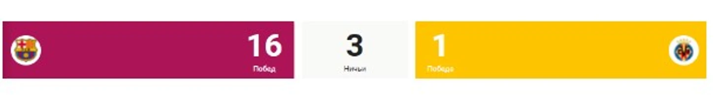 Исторически Барселона в очных встречах с Вильярреалом демонстрирует практически полное доминирование. В последних личных 20 встречах команд были зафиксированы: