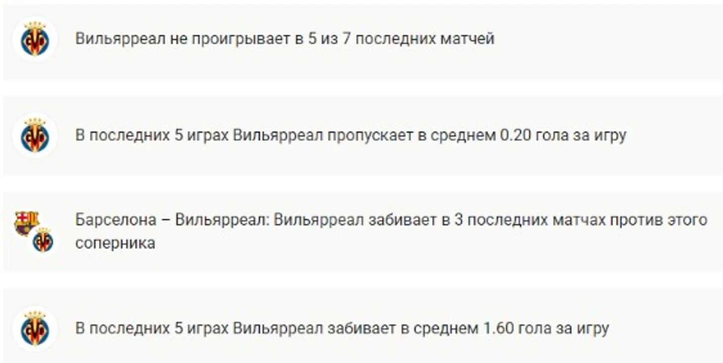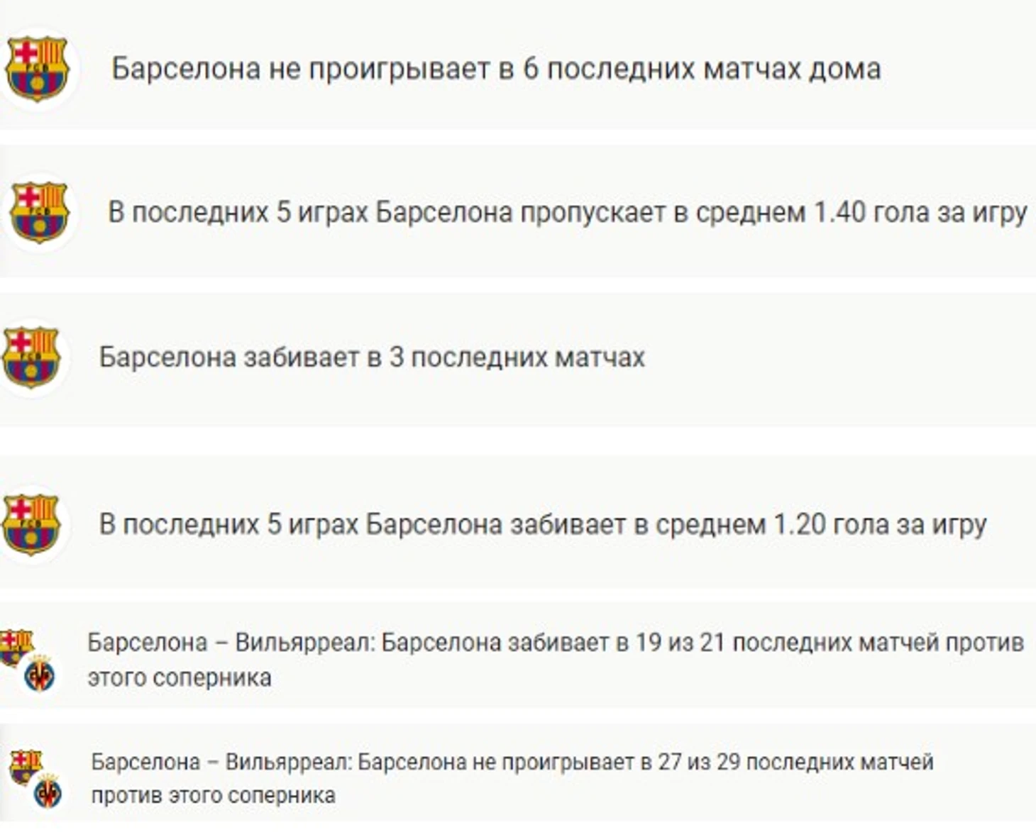 Также прежде чем делать прогноз на матч Барселона — Вильярреал, рекомендуем ознакомиться со следующими статистическими фактами каталонцев: