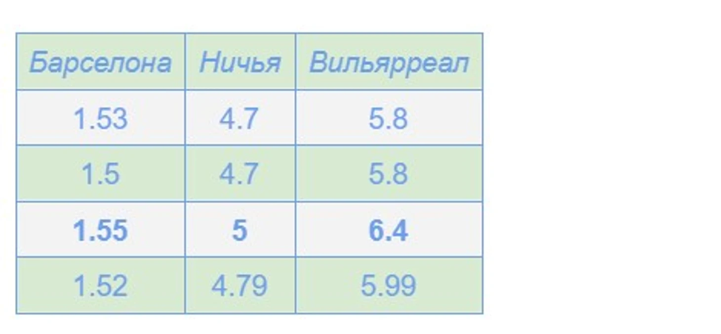 Котировки букмекеров на матч Барселона – Вильярреал, в целом, соответствуют нашему прогнозу на победу каталонцев, и выглядят следующим образом: