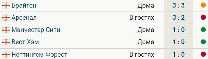 В 6 последних турах «Ливерпуль» одержал 2 победы – над «Манчестер Сити» (1:0) и «Вест Хэмом» (1:0). Также на этом отрезке «красные» дважды сыграли вничью (с «Эвертоном» – 0:0 и «Брайтоном» – 3:3) и потерпели два поражения (от «Арсенала» – 2:3 и «Ноттингема» – 0:1).